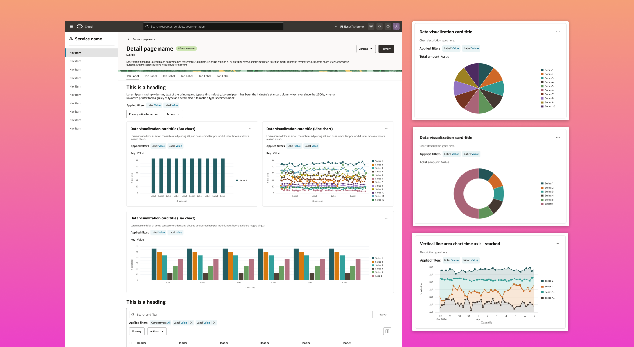- Flexible chart and card layouts to meet the needs of all OCI services.